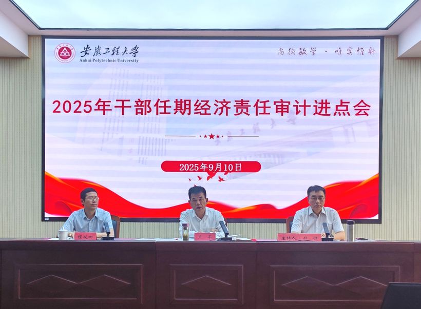 9月10日上午,学校召开2025年党政领导干部经济责任审计集中进点会。校党委书记、党委审计委员会主任卢平,校党委副书记郑健,校党委常委、纪委书记、监察专员程双四出席,组织部、审计处负责人以及被审计对象及相关单位干部、教职工代表参加,会议由郑健主持。
